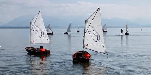 Jollensegeln, Windsurfen, viele Erlebnisse auf dem Wasser und an Land – beim Chiemseecamp gibt es das alles auf einmal und noch viel mehr. Neben dem Segeln auf verschiedenen Bootstypen und Windsurfen, das man hier lernen und üben kann, sorgen Fahrradtouren, Flussfahren, Abenteuer- und Ballspiele für Abwechslung. Die Intensität des Segelns und Windsurfens richtet sich nach dem Wetter und den Interessen der Teilnehmer.