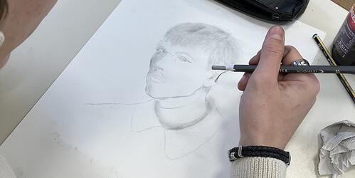 Der praktische Teil des Projekts begann mit Bleistiftübungen anhand von Fotografien, die eine intensive Auseinandersetzung mit Physiognomie, Form, Licht, Proportionen und Anatomie erforderten. Diese Grundlagen bilden die Basis für die kommenden Wochen, in denen die Klasse ihre künstlerische Reise mit Farben fortsetzen wird. Die Leinwand wird zum Schauplatz einer individuellen Entdeckungsreise, die nicht nur die Kunst, sondern auch die eigene Persönlichkeit in den Mittelpunkt stellt.