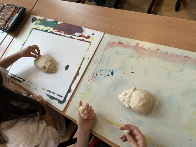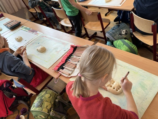 In der letzten Malstunde der zweiten Klasse drehte sich alles um das Modellieren mit Salzteig. Zuerst tauchten die Kinder ihre Hände in den weichen Teig und kreierten eine Vielzahl kleiner Kunstwerke - darunter auch die praktischen Stiftigel. Diese einzigartigen Stiftehalter wurden von den jungen Künstlerinnen und Künstlern selbst gestaltet und finden nun einen besonderen Platz auf den Schultischen.