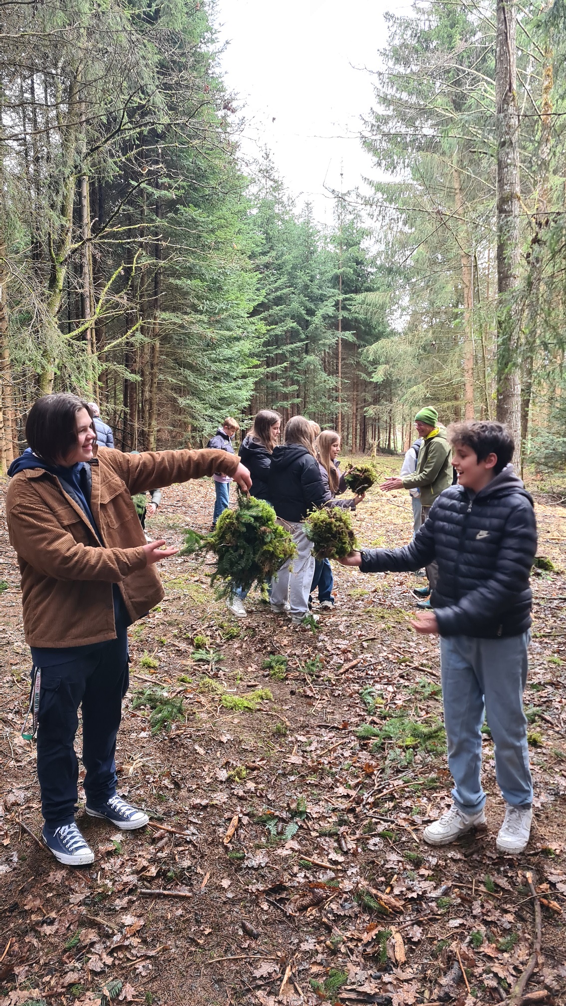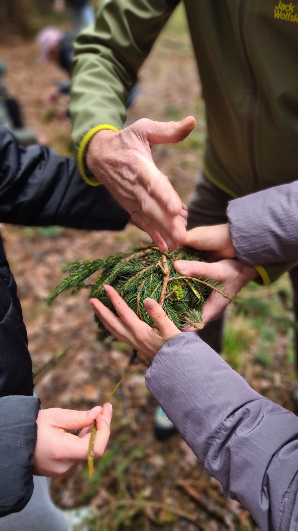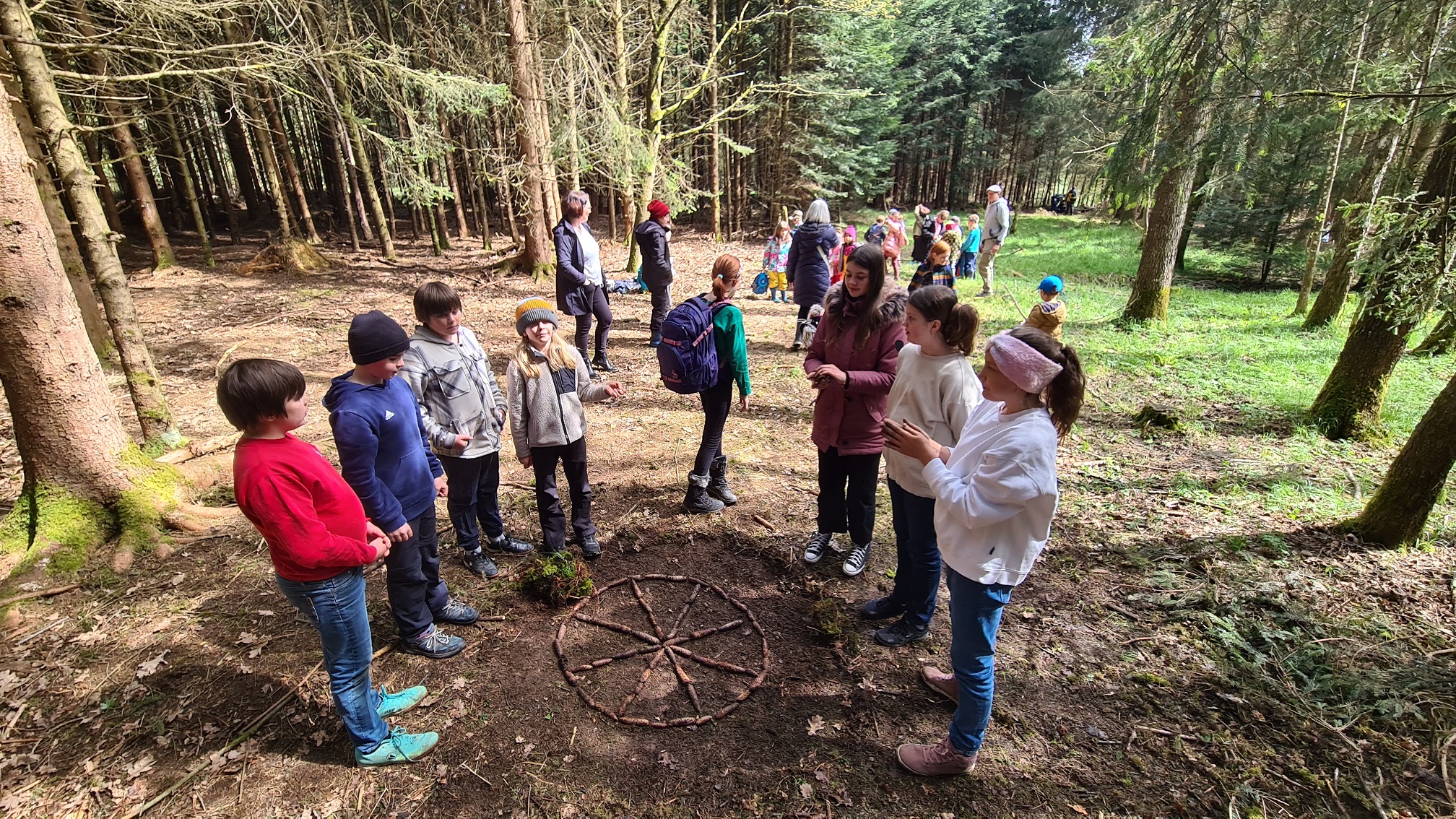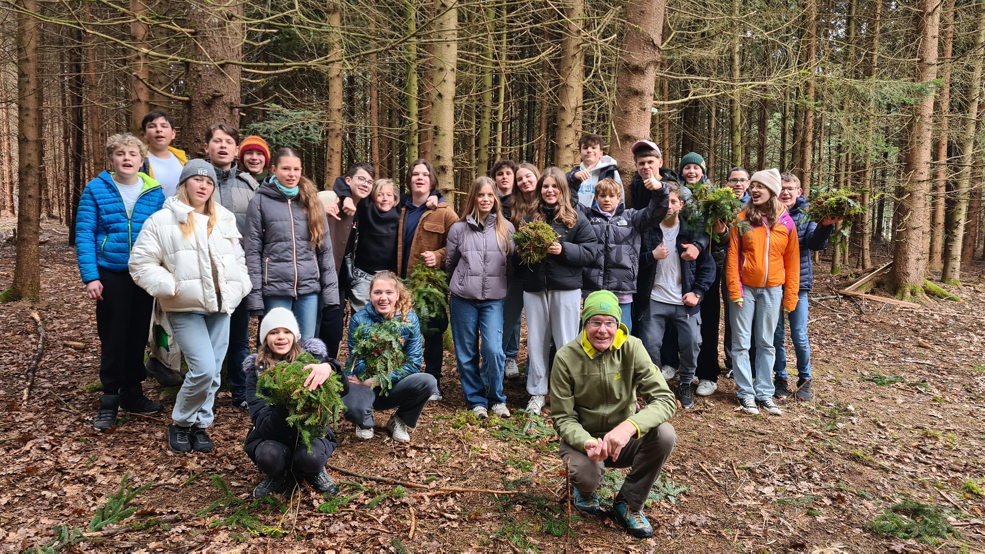 Erlebnispädagogik im Wald: Schülerinnen und Schüler der Mittelstufe stellten sich der ungewöhnlichen, aber lehrreichen Aufgabe, ein Ei sicher in Naturmaterialien zu verpacken