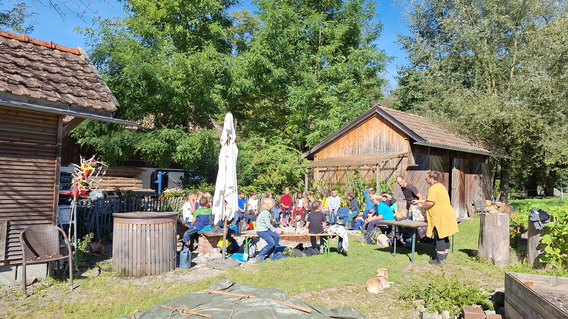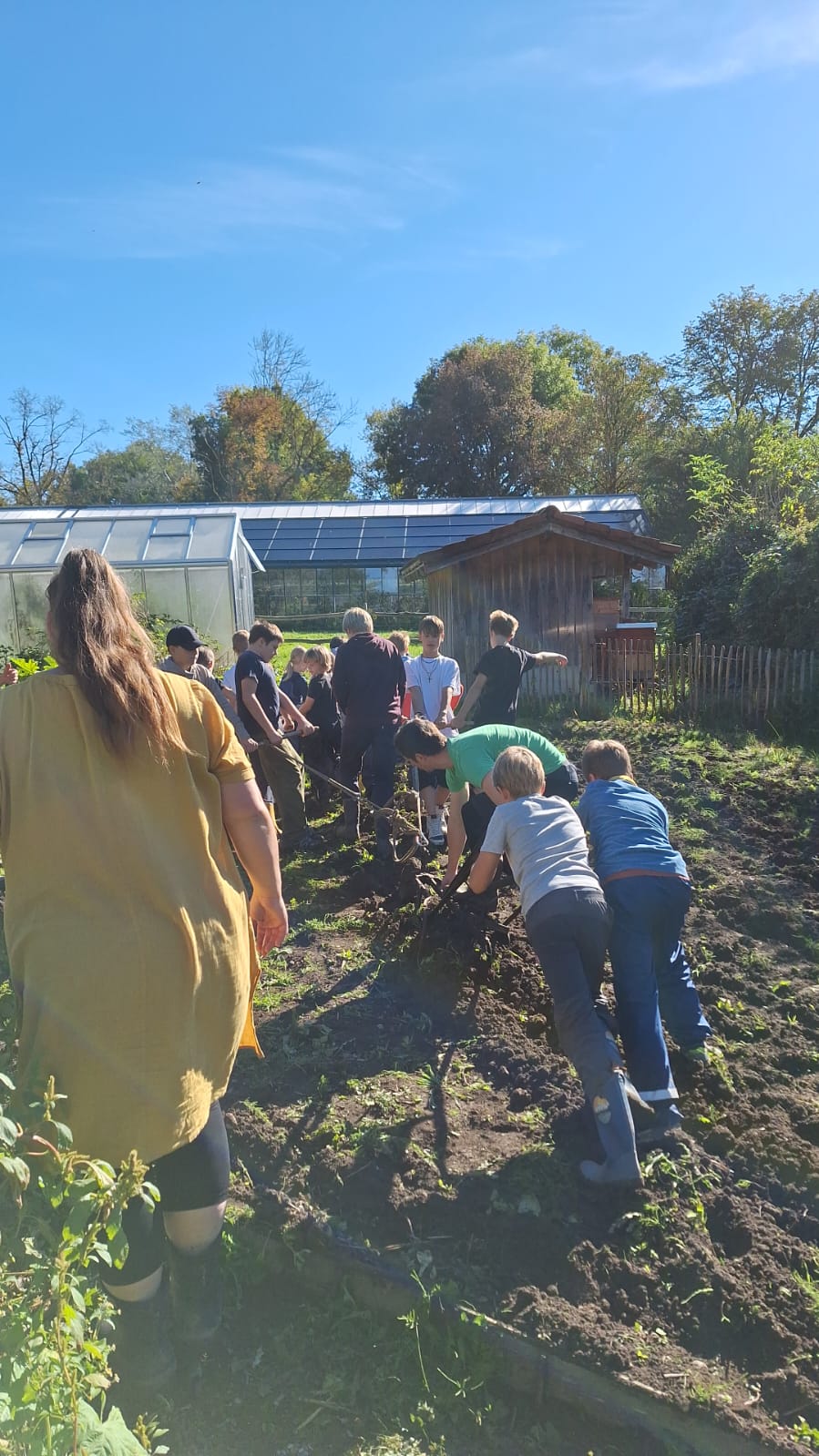 Die 3. Klasse beschäftigt sich zurzeit mit dem Thema Ackerbau. Dabei lernen die Kinder ganz praktisch den Kreislauf vom Korn zum Brot kennen. Im Schulgarten wurde zunächst gemeinsam mit den Eltern das Feld vorbereitet und von Unkraut befreit. Dann hieß es für die Kinder, den Pflug über das Feld zu ziehen, zu eggen und zu säen. Mit dem alten Säspruch: „Bemisst den Schritt! Bemisst den Schritt! Die Erde bleibt lange jung!" verteilten die Kinder den Roggen gleichmäßig auf dem Feld.