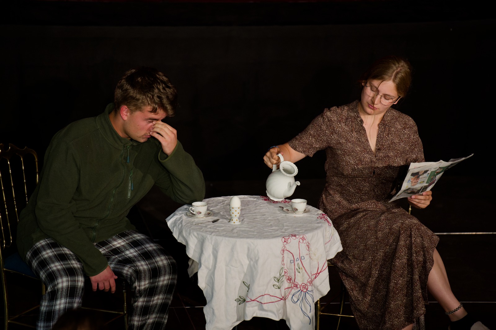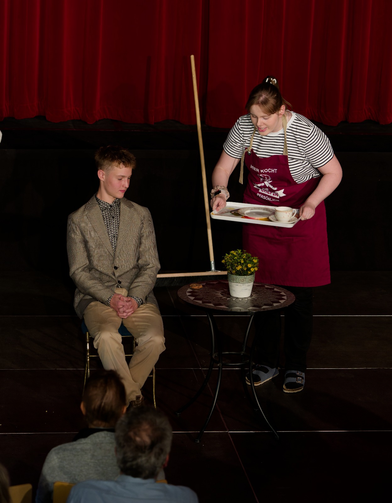 In der 12. Klasse findet am Ende des Jahres ein künstlerischer Abschluss statt – ein Ergebnis über die Arbeit eines ganzen Jahres. Die Schülerinnen und Schüler wurden jeweils zu zweit oder zu dritt in Gruppen eingeteilt, um unter der Leitung des Schauspiellehrers Lukas Stiepert humoristische Duo- oder Trio-Szenen zu erarbeiten.