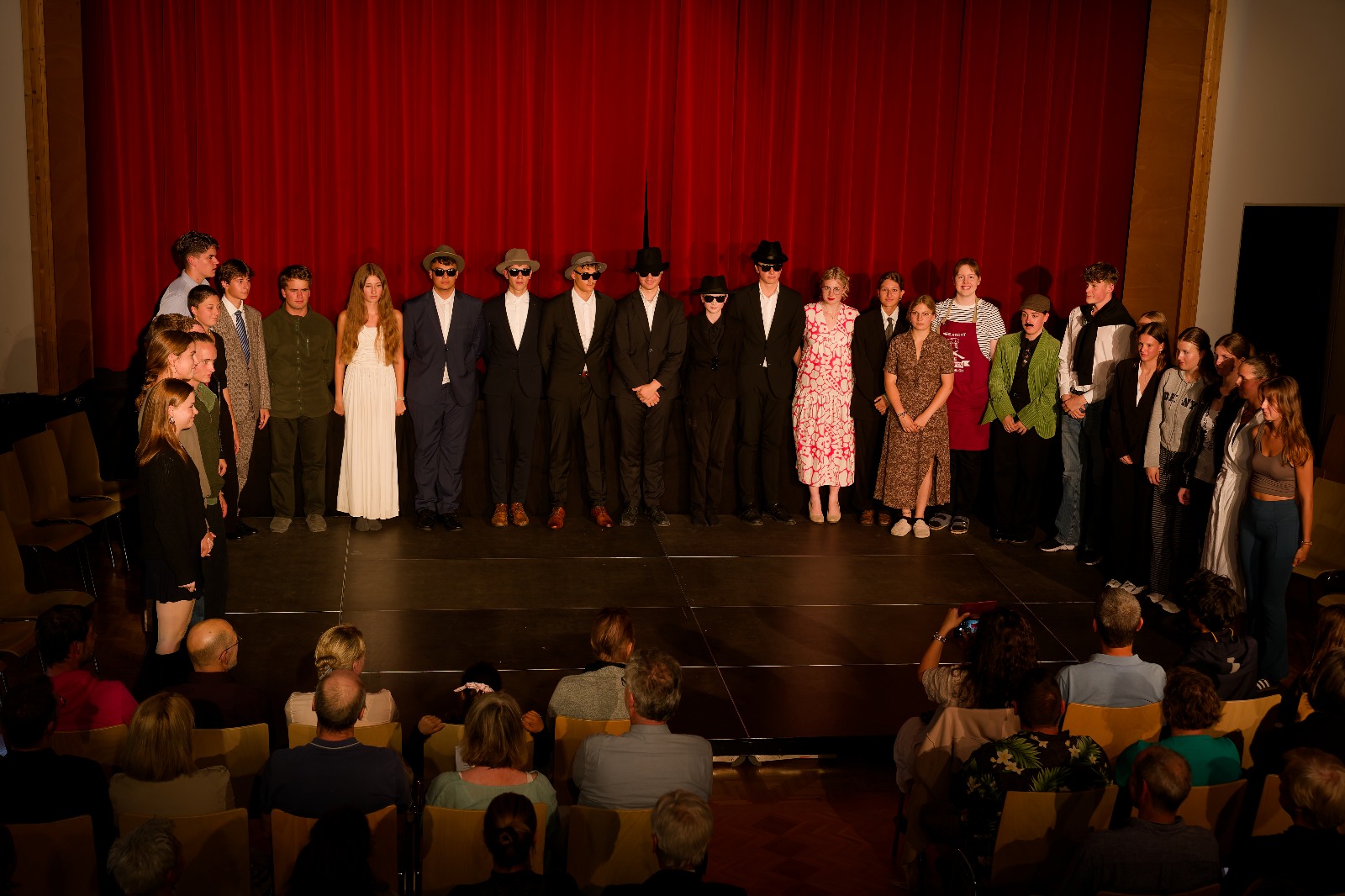 Die Jugendlichen hatten die Aufgabe, ihre Szenen selbst auszuwählen. Anschließend ging es darum, diese inhaltlich und sprachlich zu durchdringen und sich zu eigen zu machen. Es galt, umfangreiche Texte zu lernen und sie souverän abrufbar in der jeweiligen Rolle darzubieten, sowie den Mut aufzubringen, sich überzeugend und authentisch auf der Bühne zu präsentieren. Dabei kamen sie – jede und jeder – an verschiedenen Punkten an ihre Grenzen, die sie im Laufe der Proben jedoch zu überwinden imstande waren. So ergab sich in dieser Zeit der Szenenarbeit für die Klasse ein großes Lernfeld, in welches sie sich ausnahmslos hineinwagten und somit an ihrem Abschlussabend das Publikum zum Staunen brachten.