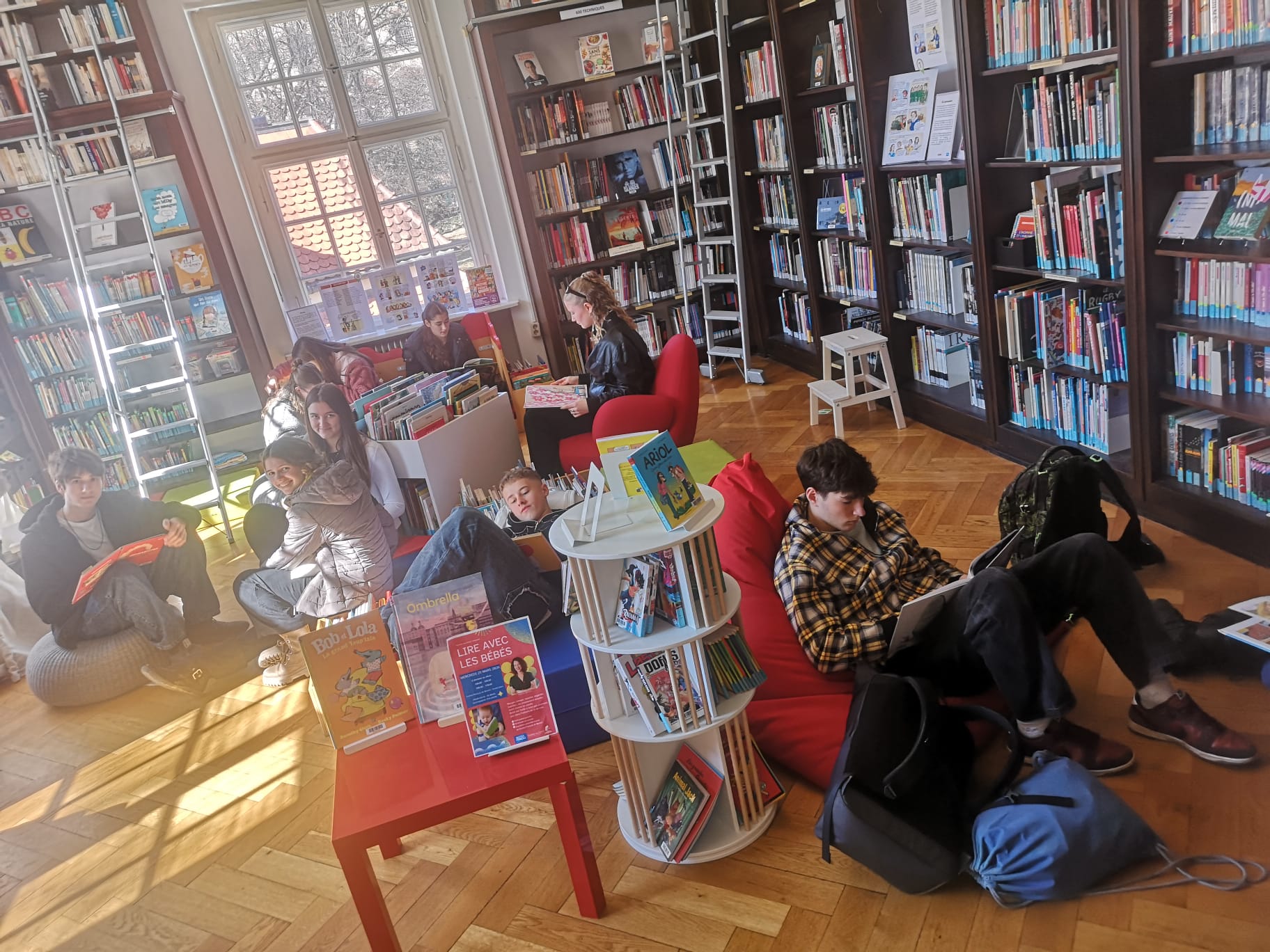 Bei dieser Gelegenheit erhielt die Klasse auch einen Einblick in die umfangreiche Mediathek des Instituts. Diese bietet eine große Auswahl an Büchern, Zeitschriften und Filmen, die ausgeliehen werden können – ein äußerst interessantes Angebot, das zum Weiterlesen und Vertiefen einlädt.